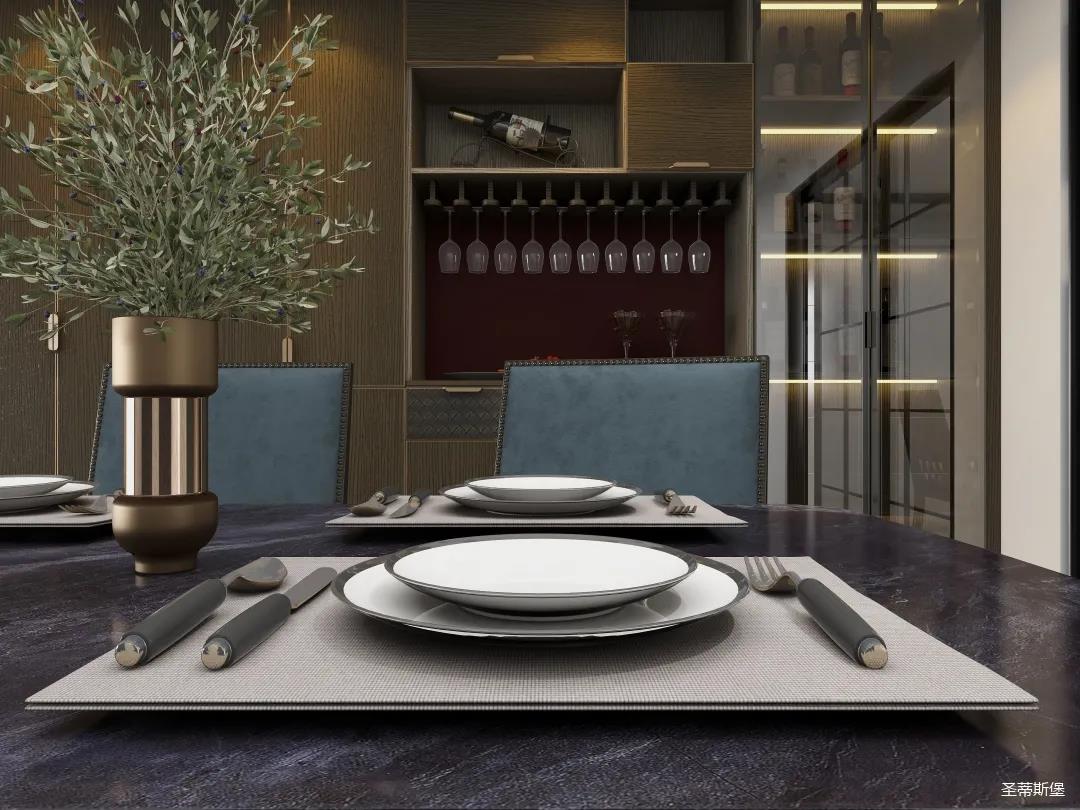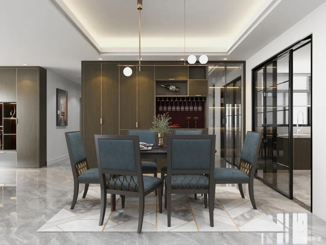 餐廳系統(tǒng)詮釋著材質(zhì)與工藝的質(zhì)感結(jié)合。一字型定制餐邊柜,實木飾面細(xì)膩自然,讓就餐空間成為了高級情調(diào)的重點。明暗分區(qū)的設(shè)計構(gòu)造,順勢創(chuàng)造了更多的儲物驚喜。