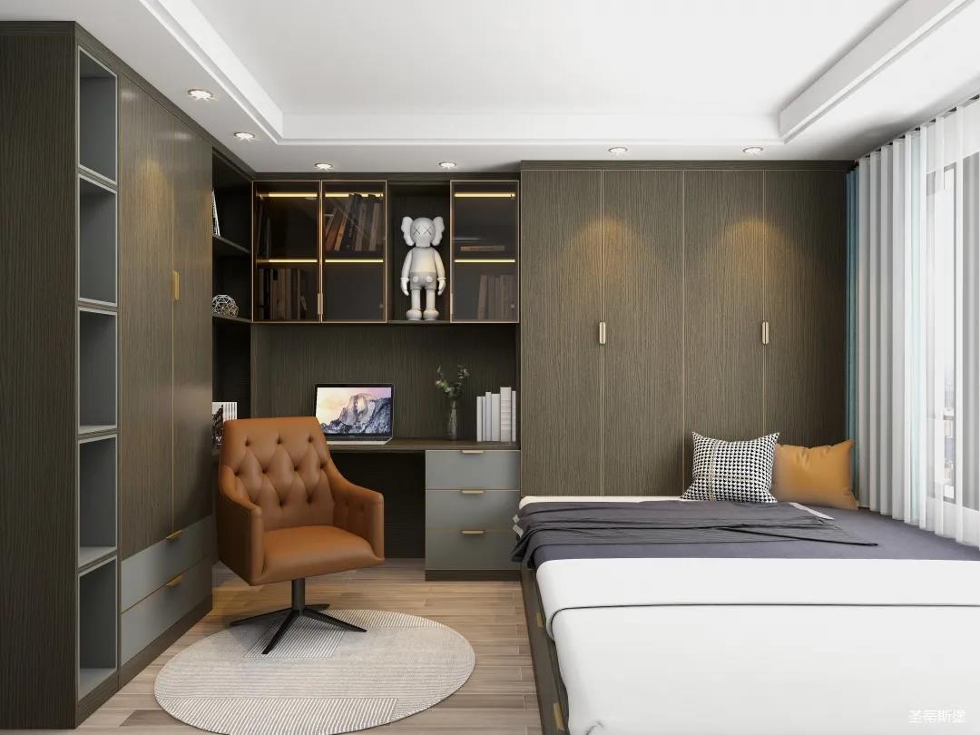 別具一格的定制,都是通過高級材質(zhì)與色彩來展現(xiàn)極簡摩登生活。一字型衣柜+書桌設(shè)計,打造了“簡而不減”的別致空間。深邃的灰色系定制為空間注入現(xiàn)代都市風(fēng)情,在品位簡約中彰顯奢華氣質(zhì)!