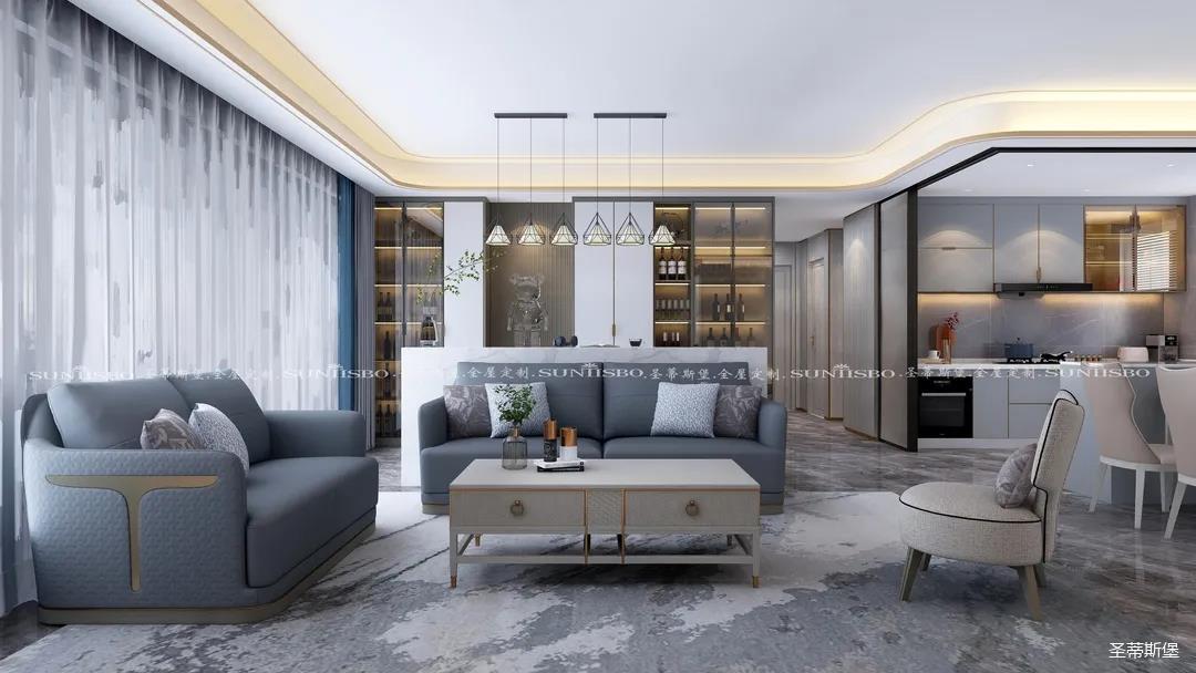 經(jīng)過細(xì)致溝通、實(shí)地勘察,跟老公在當(dāng)?shù)亻T店實(shí)地商量,共同選擇了圣蒂斯堡時(shí)尚簡奢風(fēng)格,最棒的是直接配套了相關(guān)風(fēng)格燈具款式和窗簾顏色,相當(dāng)協(xié)調(diào),我們倆可以安心當(dāng)“甩手掌柜”啦~