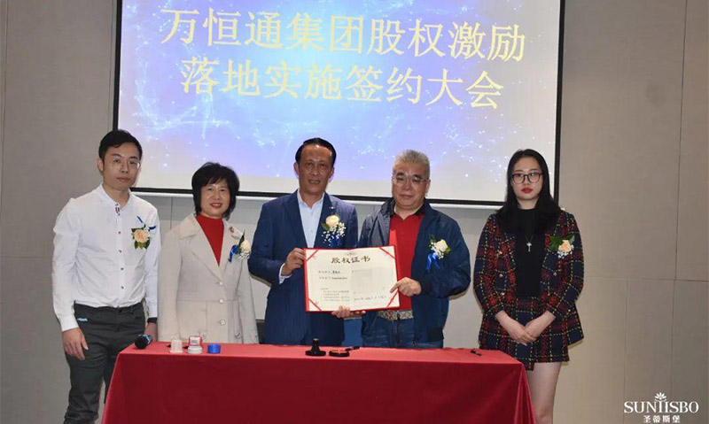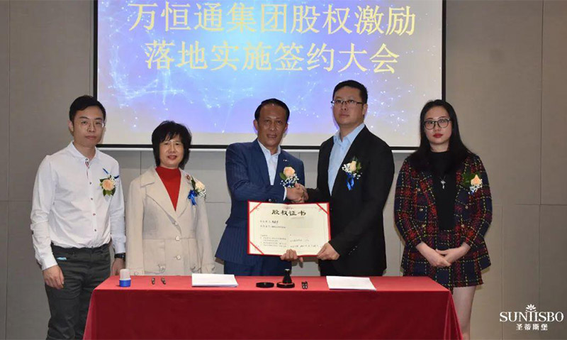 JN江南体育官方网站集團執(zhí)行董事及法人代表王浩基先生正式為第一期六位虛擬受限股股東授予榮譽證書并簽訂股權分配協議。