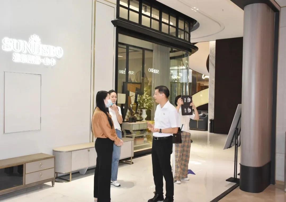 展會期間,全國家居建材連鎖巨頭—紅星美凱龍集團鄭總一行蒞臨圣蒂斯堡營銷中心進行參觀交流。集團領導熱情接待,雙方進行了深度洽談,并一起參觀了洛斯、里奧、洛卡等展廳。